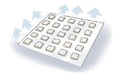 実用新案登録の特殊シートを採用。粘着剤面に無数の凸部を形成し、気泡ができにくい構造です。また耐水性にも優れています。